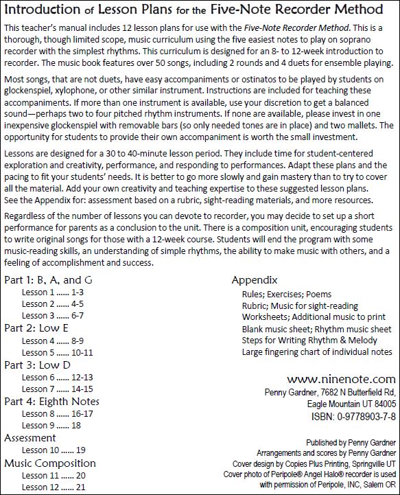Five-Note Recorder Method Teacher Manual: Table of Contents & Intro